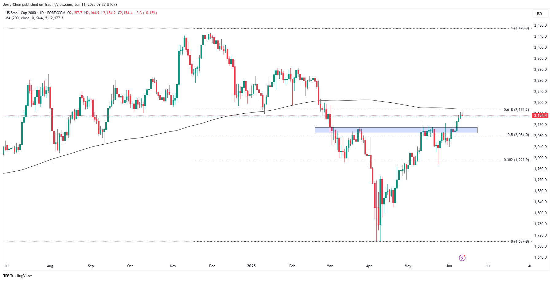 若今晚CPI低于预期从而激发降息预期,包括罗素2000在内的美国主要股指有望延续强势表现。